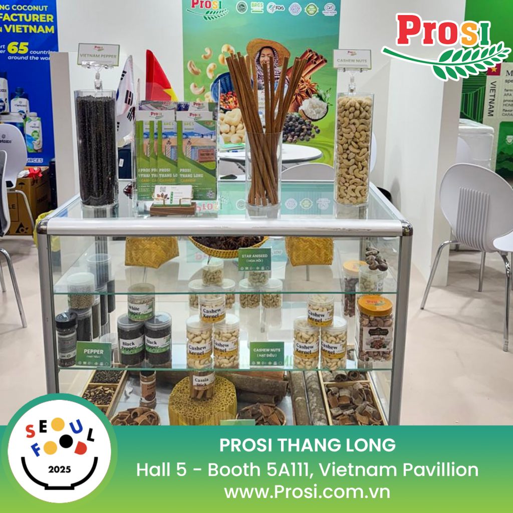 As one of Vietnam’s leading exporters of spices and nuts, Prosi Thăng Long was honored to join Korea Food 2025, South Korea’s premier international food exhibition. The event brought together top global suppliers, importers, and food manufacturers — and Prosi was proud to represent the best of Vietnam’s agricultural excellence.